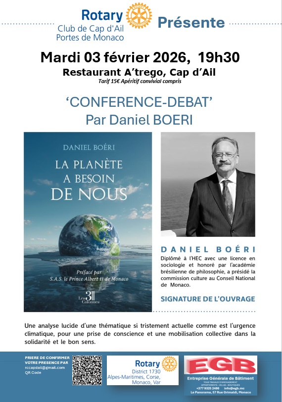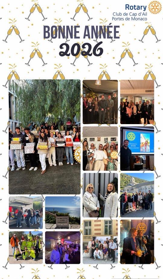 La présidente Bénédicte Rossignol et tous les membres du rotary club de Cap d’Ail Portes de Monaco vous souhaitent une excellente année 2026 et vous donnent rendez vous prochainement pour vous faire découvrir nos actions et manifestations