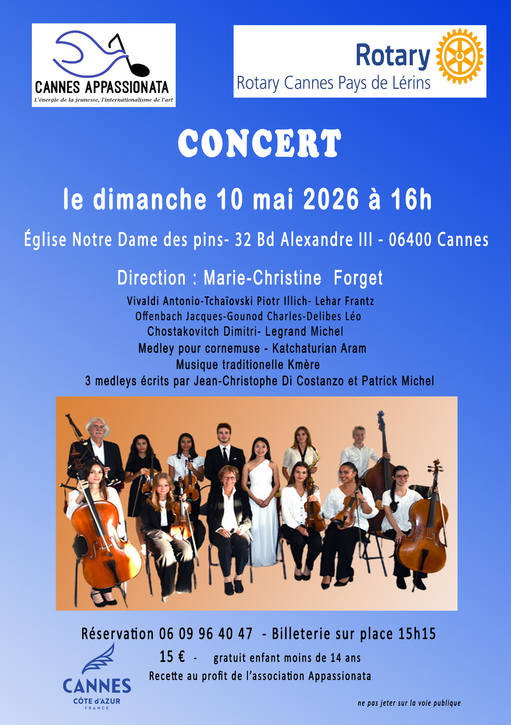 Concert le 10 mai 2026 à 16h au profit des jeunes musiciens Cannois